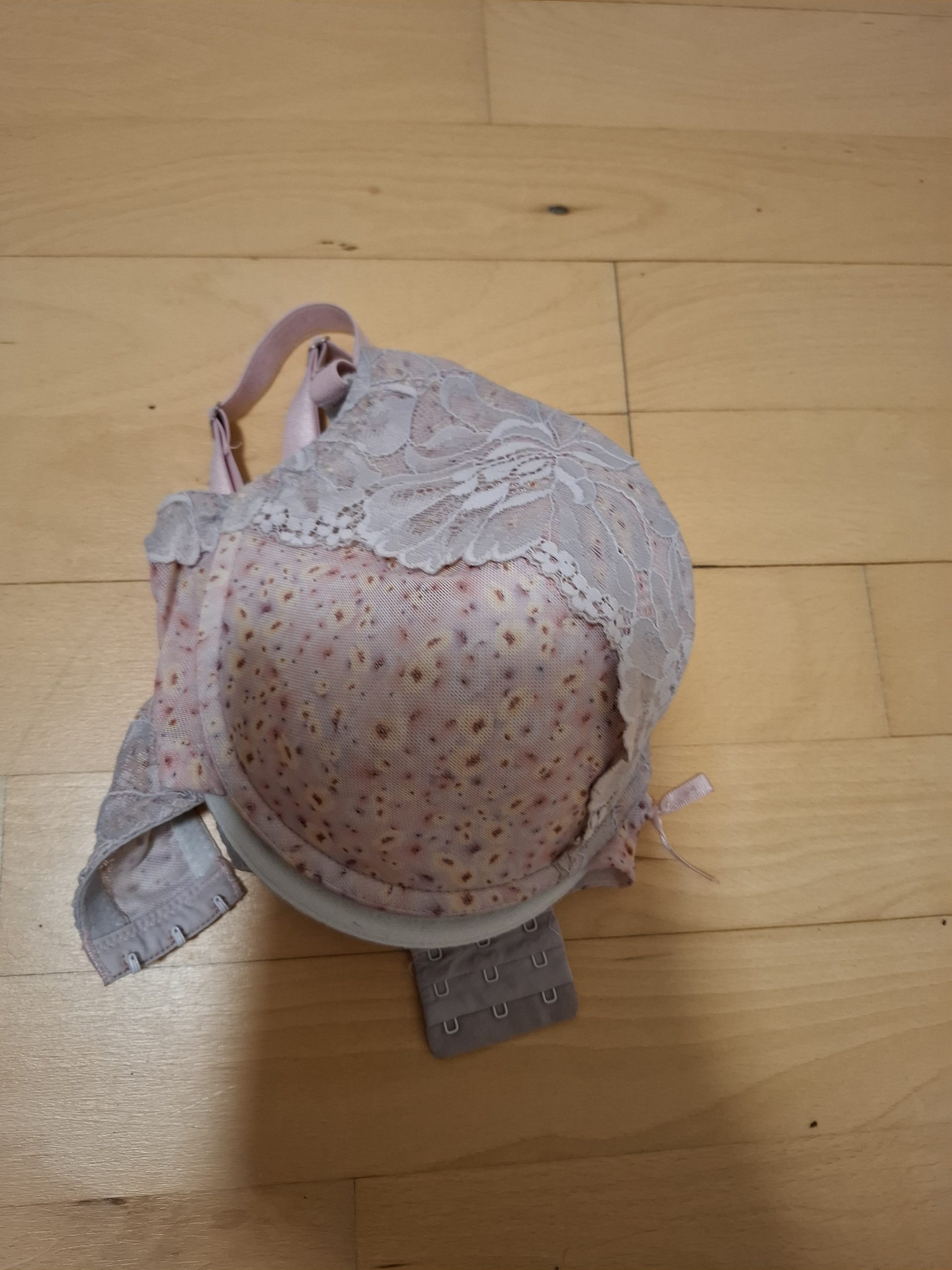 Brugt bh lyserød med blomster og blonder