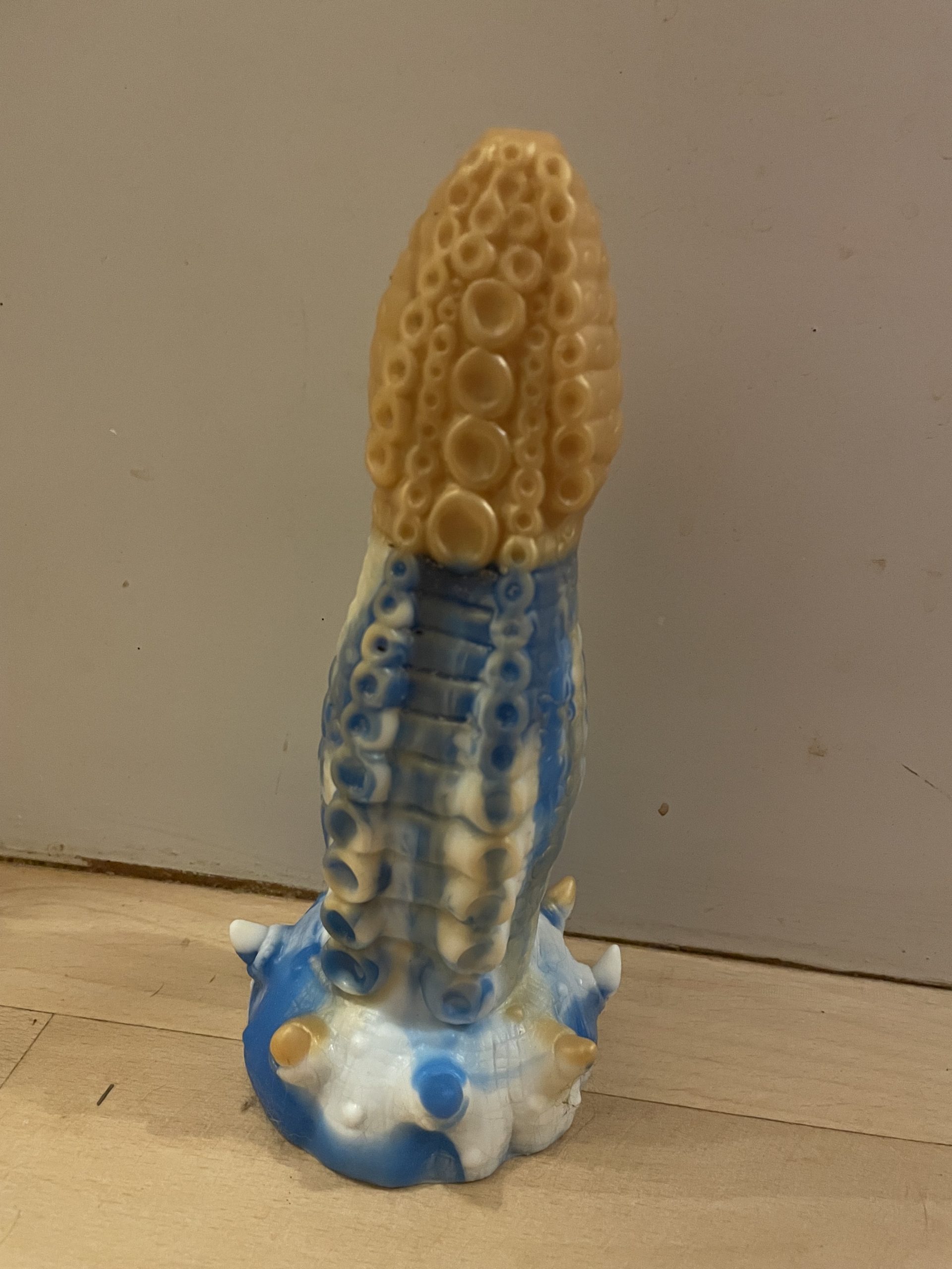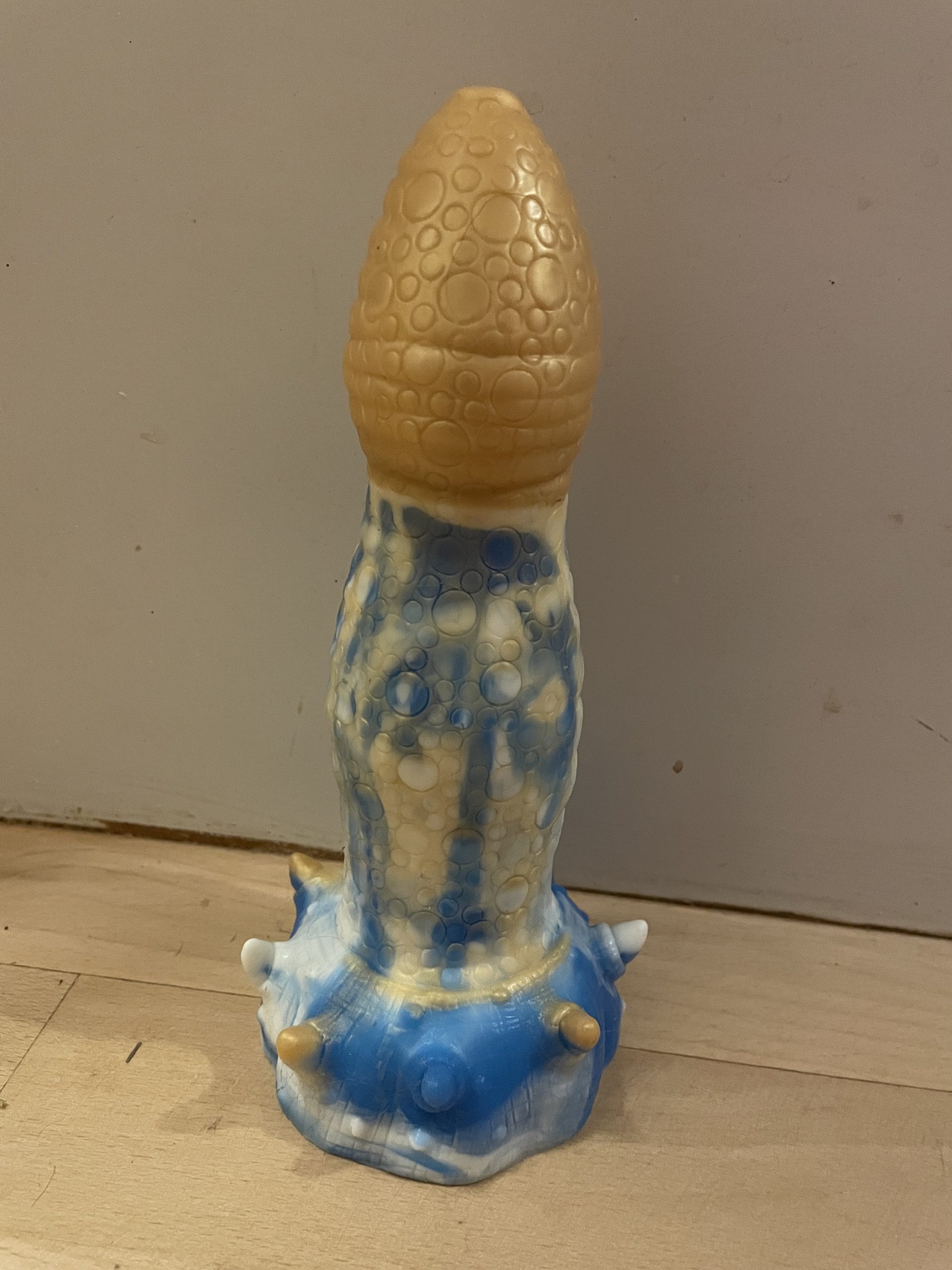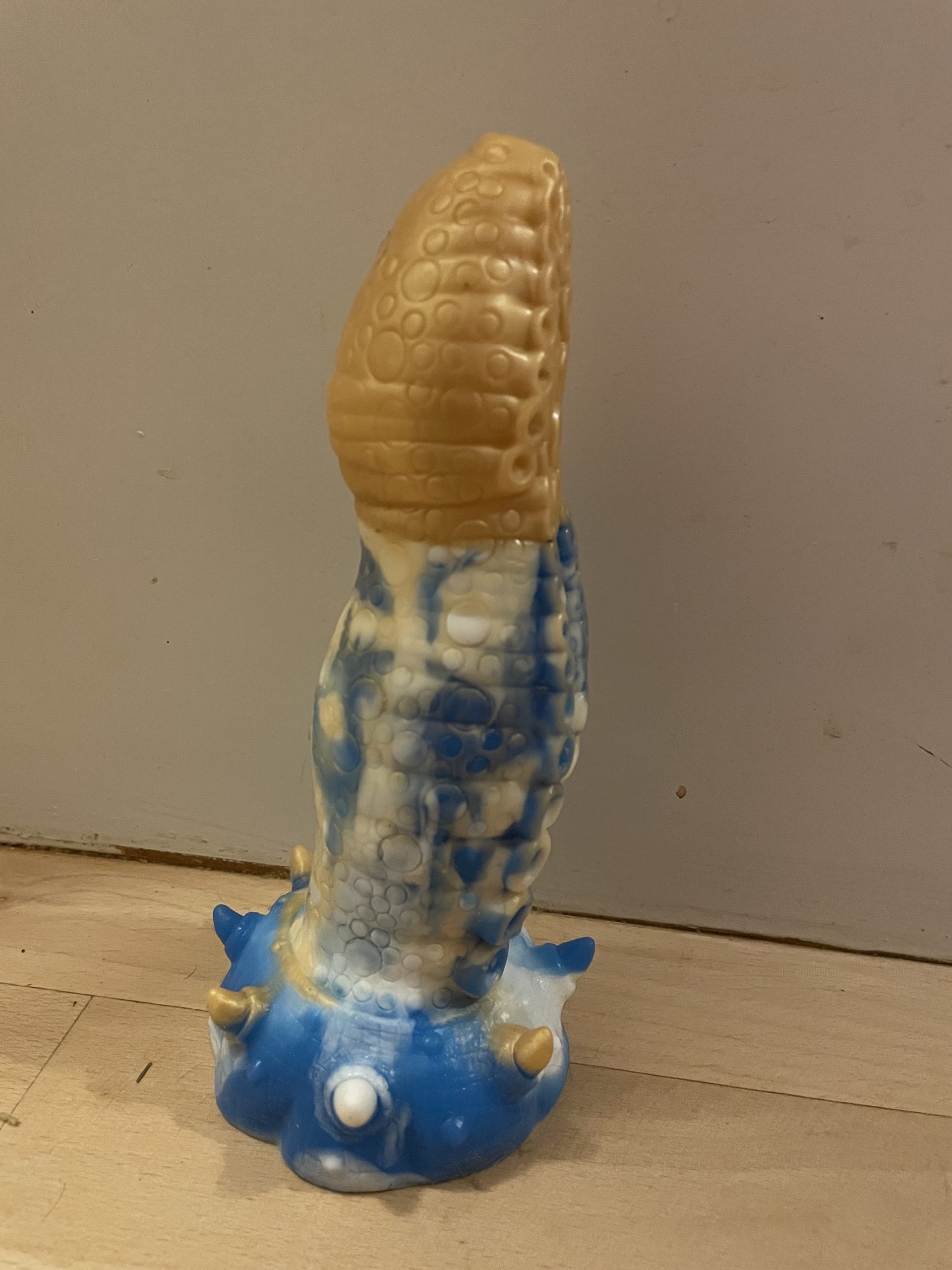 Jeg sælger denne brugte dildo. Denn er ren på billederne men jeg bruger den inden forsendelse så den er så frisk som mulig. Den er ca. 4,5 cm bred, 17,5 cm kan komme ind og 20,5 cm i længden i alt. Den er med sugekop som dog ikke virker så godt. Hvis der er nogen spørgsmål så skriv endelig 🙂