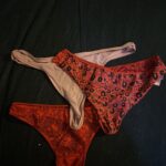 At par blonde g strenge i røde. Det er et par af mine yngling, som jeg har brugt en hel del. Stoffet er hverken helt nyt eller helt forvasket