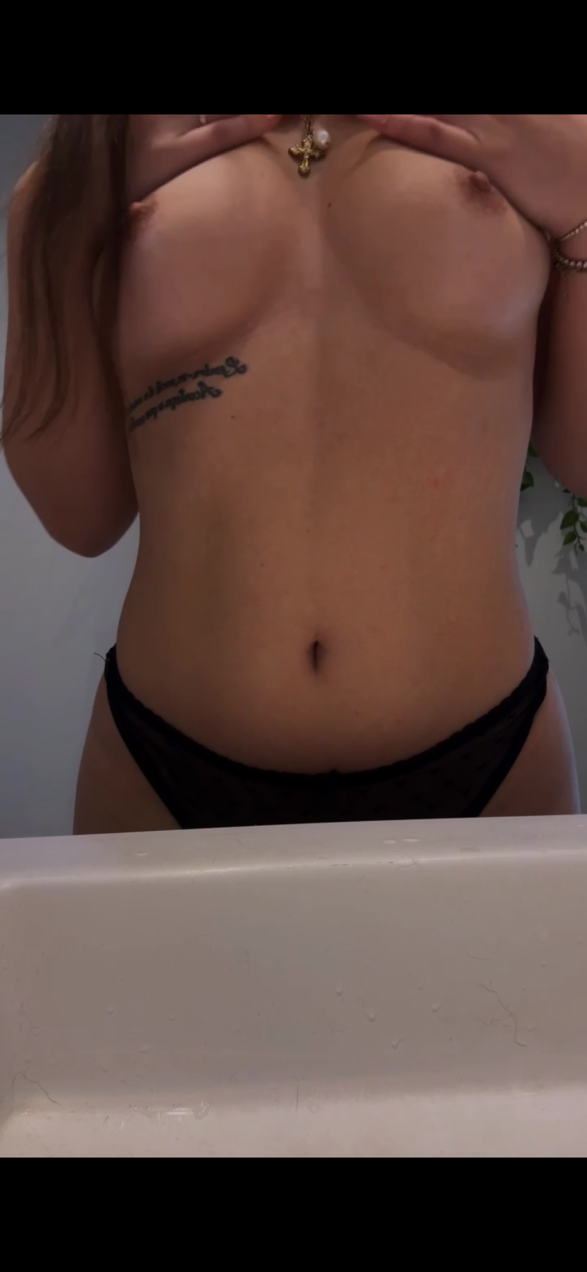 Lille teaser på min unge krop, står i trusser og topløs foran spejlet og ter mig for dig…🤤❤️