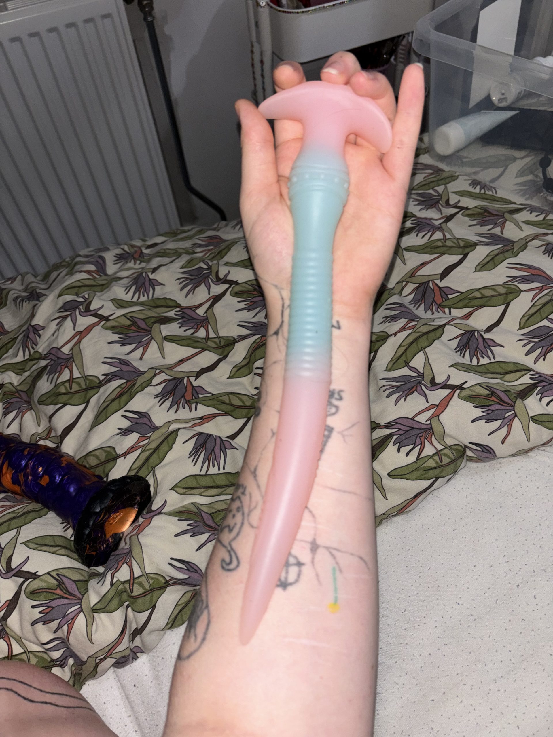 Cute lang pink og blå Butt plug.