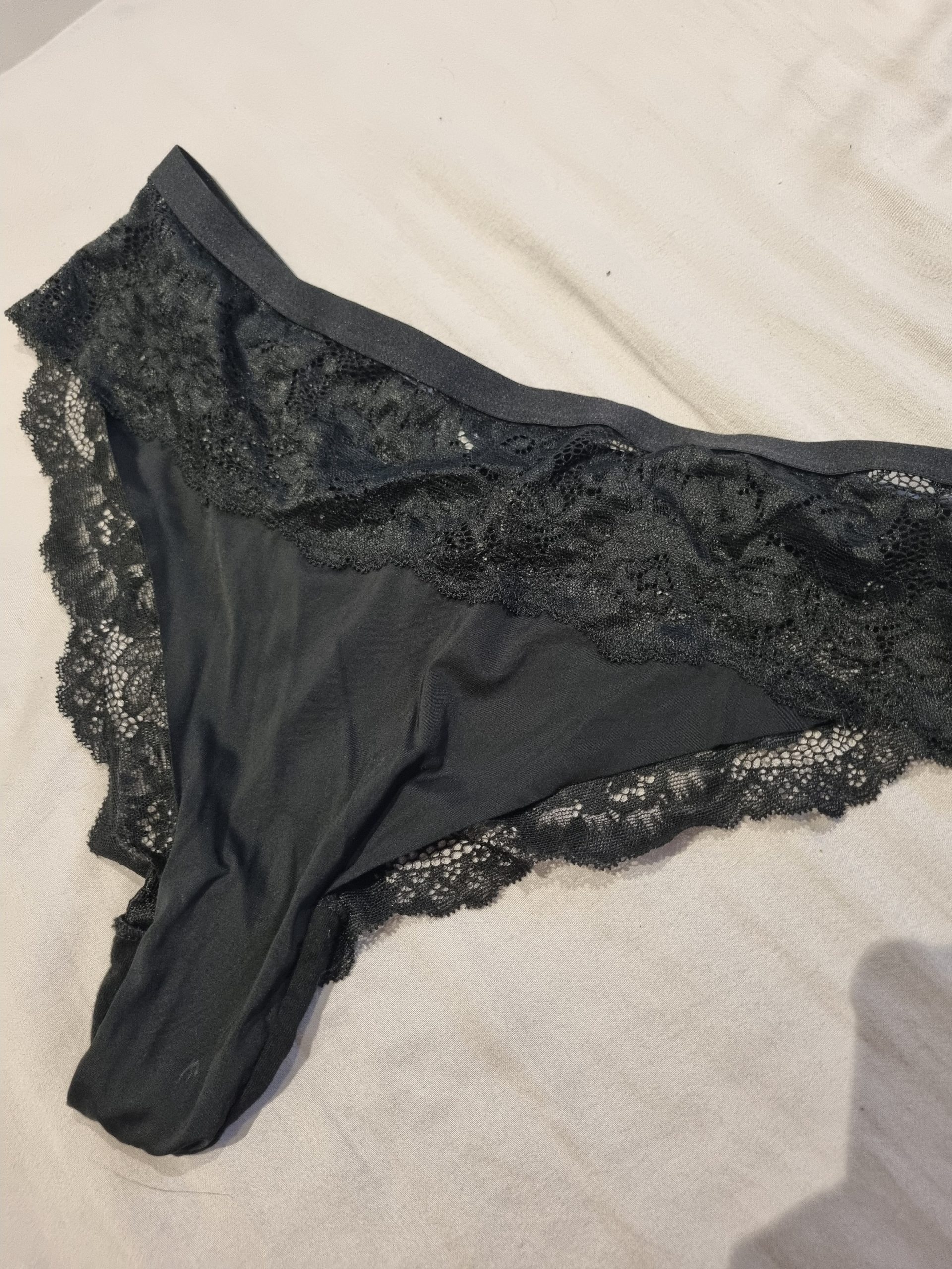Sorte nylon/ blonde trusser efter en god omgang selvforkælelse.