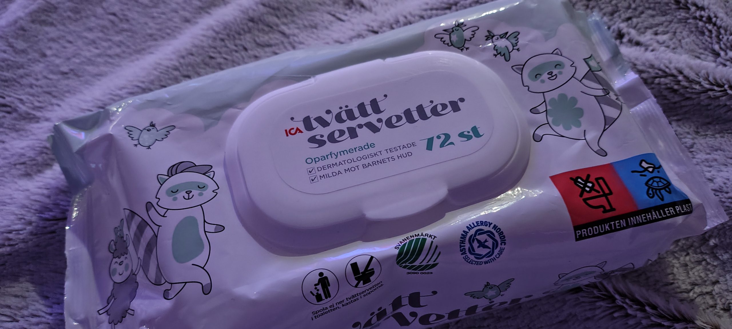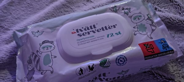 Våtservetter med fittsaft/kiss och bajs.
