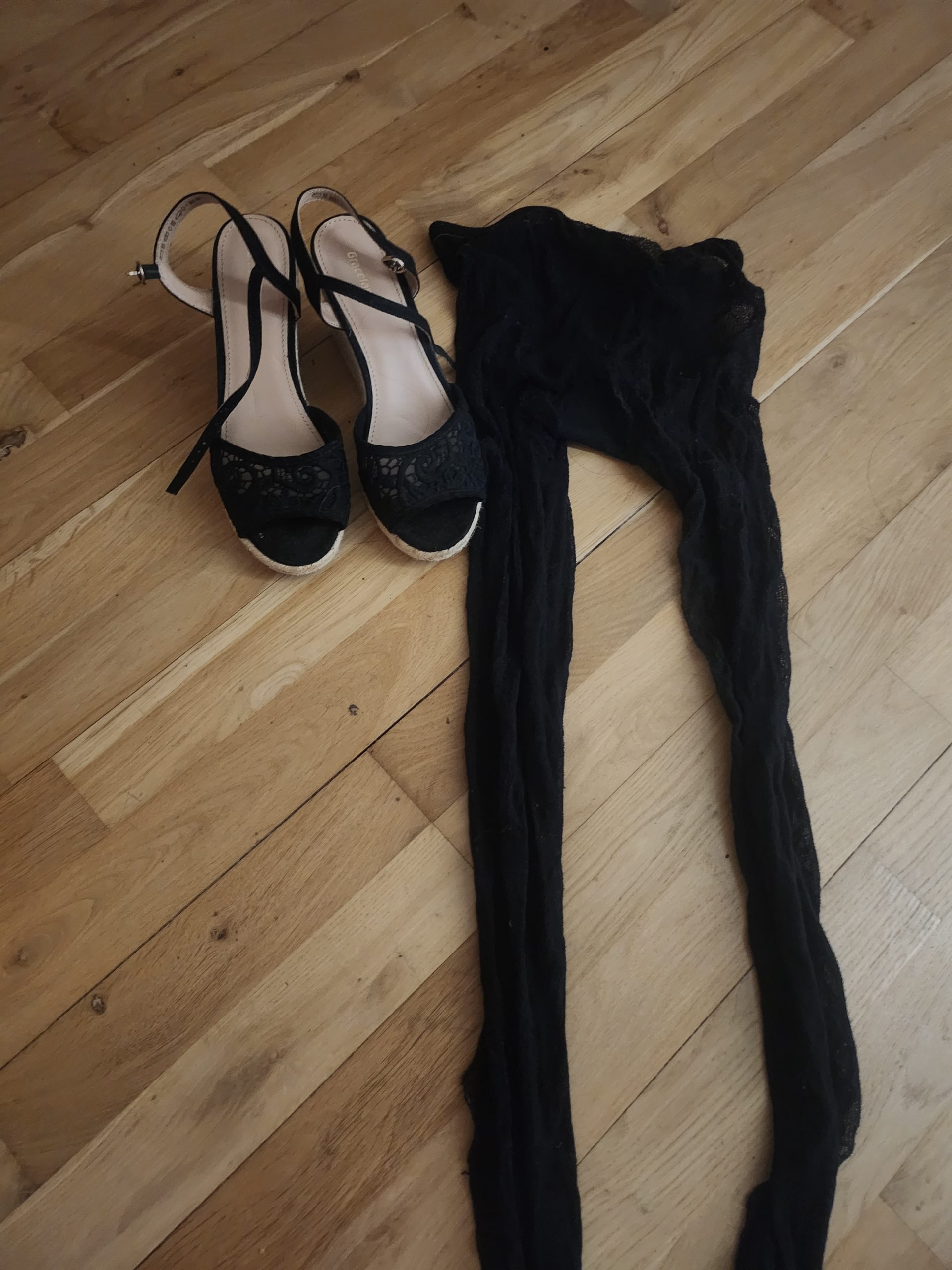 En video af mig der tager tynde strømpe bukser på og sandaler.